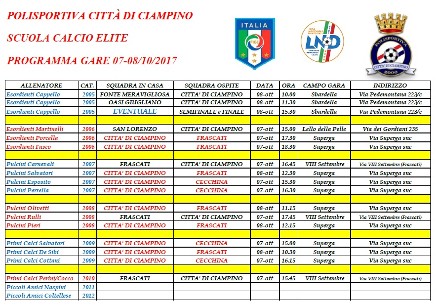 PROGRAMMA SCUOLA CALCIO 7-8 OTTOBRE